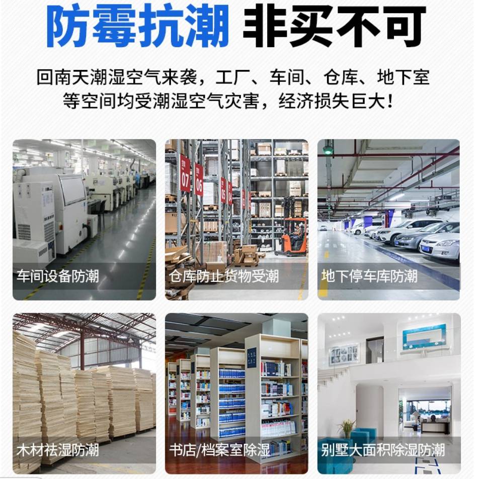 在一年四季中,春夏兩季的雨水相對較多,相對濕度也相對較大,對于工廠企業的日常工業生產中,當原材料及其制成品遇到空氣中的相對濕度比加工工藝、倉庫儲存所要求的相對濕度標準高時就會吸濕,出現不同程度的影響和危害。比如說食品、藥品以及木材、紙張、紡織品等容易受潮發霉變質,而電子電器、機械設備以及五金工具等受潮則容易出現短路漏電、氧化銹蝕等問題。