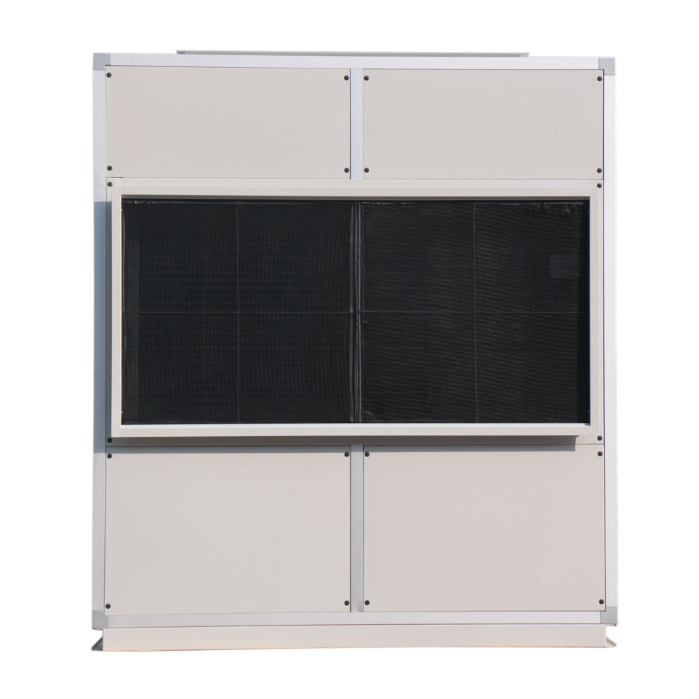 室外機:換熱器采用一次折彎成型技術,外型美觀,換熱效果好。外殼采用優質鋼板表面噴涂或不銹鋼材料,機組露天放置永無生銹之虞。