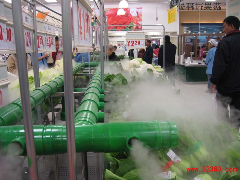 案例:超市的蔬菜柜臺(tái),在霧氣中浮現(xiàn)的蔬菜水果,看上去就像清晨剛從果園菜地里摘下來一樣新鮮。據(jù)介紹,這是超市為延長(zhǎng)蔬菜水果的“壽命”而啟用的新式“武器”,其噴出的霧氣一來可以保持低溫,二來能均勻保持水分,三來整個(gè)區(qū)域降溫造景。超市的蔬菜水果賣場(chǎng)中,一些青菜水果常因水分蒸發(fā)變質(zhì),導(dǎo)致“賣相”不好。新引進(jìn)的噴霧系統(tǒng)令不少顧客好奇不已,經(jīng)霧化的水汽可使空氣保持一定的濕度和低溫,使青菜水果常置于鮮嫩保質(zhì)之中。